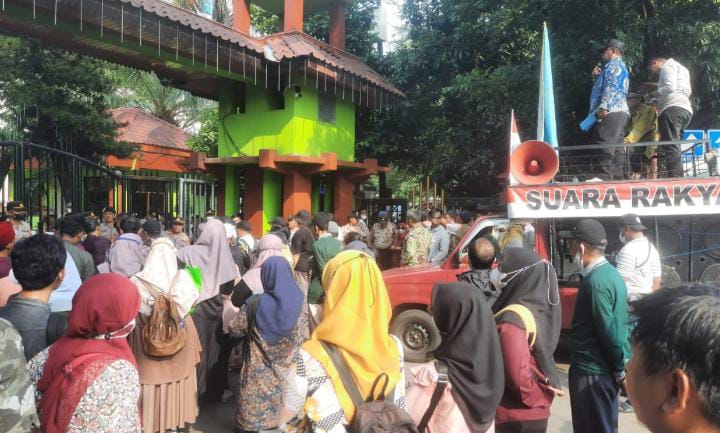 Massa juga mendesak Kepala Disdik Kota Bekasi dan Plt Wali Kota Bekasi Tri Adhianto menandatangani komitmen agar jumlah rombel sesuai dengan ketentuan yang berlaku.