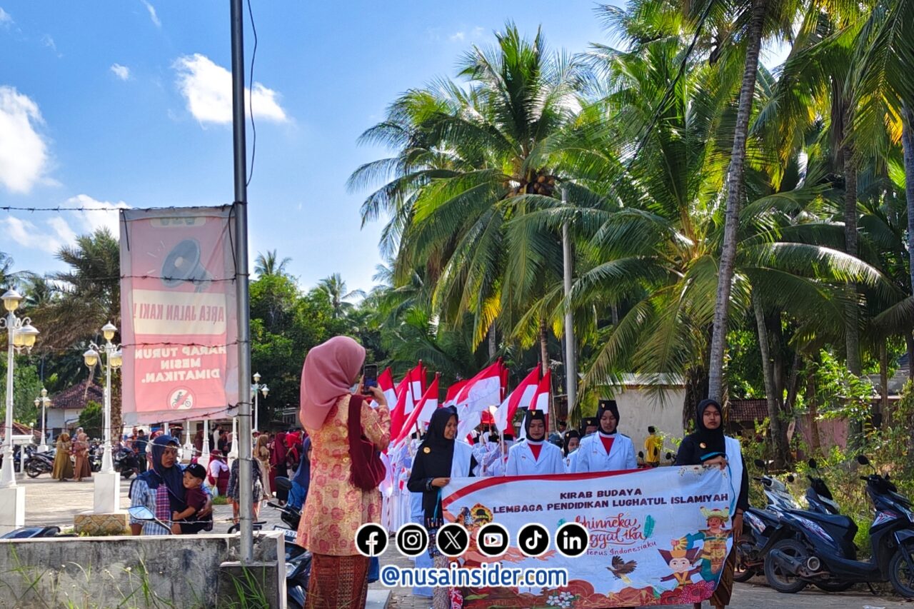 SUMENEP, nusainsider.com — Lembaga Pendidikan Lughatul Islamiyah, Yayasan Pondok Pesantren Darut Tayyibah, Desa Legung Timur, Kecamatan Batang-Batang, Kabupaten Sumenep, Madura, Jawa Timur, merayakan HUT Kemerdekaan Republik Indonesia ke-80 dengan menggelar kirab budaya, Sabtu (16/8/2025).